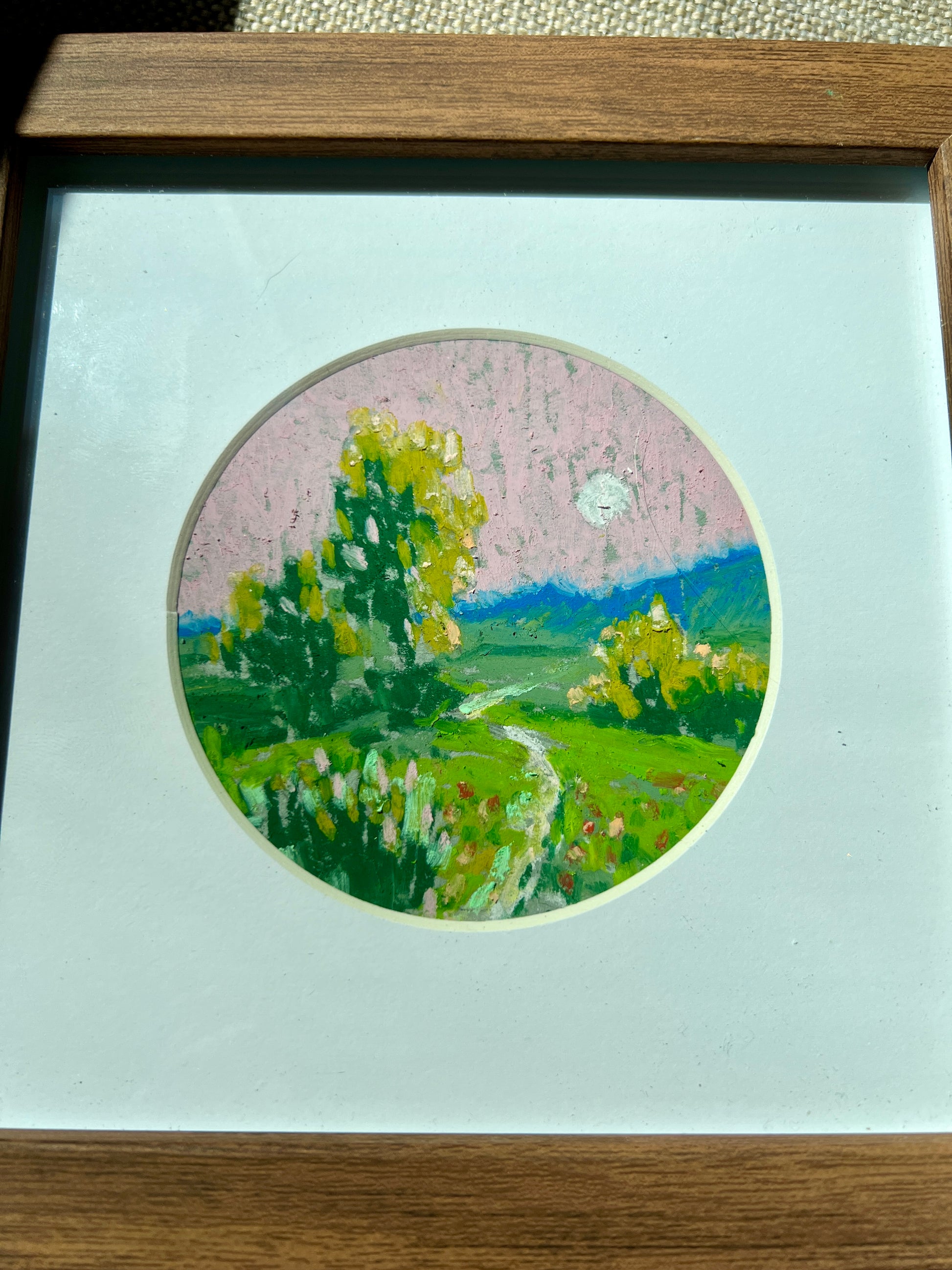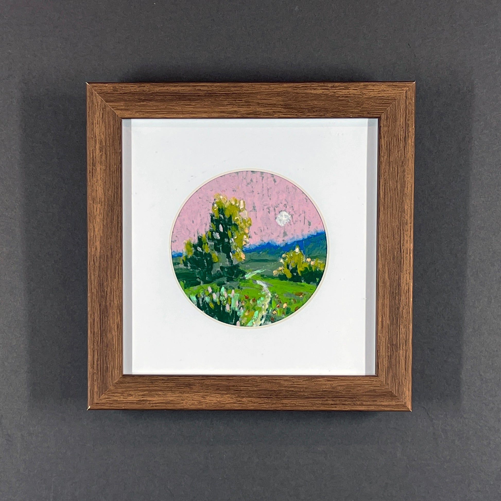 This Peaceful Paths Collection of work is unified not just in subject but in the colors that bring it to life. I have chosen a limited, vibrant palette, intentionally minimizing color mixing to preserve the purity of each hue. Rather than breaking up color fields, I have focused on playing with chromatic values—using the intensity of color itself to create depth, atmosphere, and movement within each landscape.